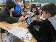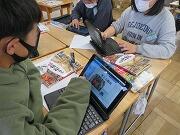 6年生の社会科。タブレットを使って各自が調べまとめたことを発表していました。