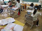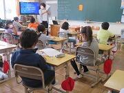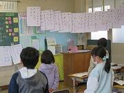 道徳の授業で、校歌について親子で話している教材を学習していました。子どもたちは、皆川城東小の校歌の内容や思いについて考えました。