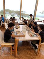 本日9/26から1泊2日で、5年生は臨海自然教室に来ています。全員元気に参加しています。10:30には自然の家に着きました。担当の先生から利用についての説明を受け、話の聞き方を褒められて、気持ちのよいスタートです。
