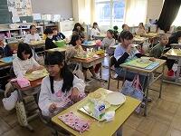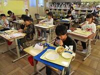 1年生と3年生の教室を訪ねました。「おいしい。」「もち麦って前にも出たよ。」「ビーフシチュー、最高。」と残さず食べている子どもたちがたくさんいました。みんなで食べるとおいしいね。これからも作ってくださる方々に感謝しておいしくいただきましょう。