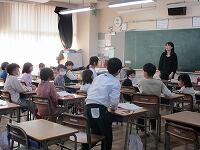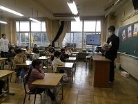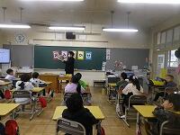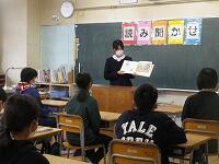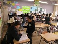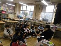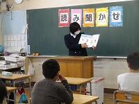 中学生は、それぞれの学年にあった本を選び、練習してきてくれました。ボランティアルームに待機中、本を手に練習し、各学年のお迎えを待っていてくれました。教室では、制服姿の中学生はぐんと大きく、さすが中学生、はっきりとみんなに聞こえる声で読み聞かせをしてくれました。小学生も憧れの眼差しで聞いていました。本校の先生も送り出した卒業生が立派になって活躍する姿を拝見し、喜んでいました。