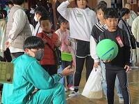 皆川城東小学校5,6年生と皆川中学校1~3年生が中心となり、皆川わっしょいまつりを開催しました。計画の段階から、アシストネットや地域ボランティア、皆川公民館の方々のお知恵や援助を受け、「射的・ボウリング・水ヨーヨー・スーパーボール・目方でドン」の6つのお店を設定し実施することができました。小学1~4年生は、グループで参加し、また、特別支援学校の生徒の皆さんとも交流でき、運営した子供たちは、やりがいを感じながら笑顔で過ごしていました。恐竜を見つけ、じゃんけんで勝ったら、さらにもう1回遊べるというルールがあり、最後まで盛り上がっていました。