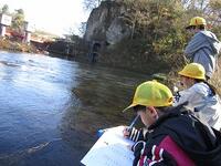 まず訪れたのは西岩崎取水口です。那須疏水の原点を実際に目の当たりにしました。「あそこから水をとりいれているんだ!」「古い取水口は今は使っていないね」「どうやってつくったのかな」気付いたこと、疑問に思ったことをたくさんスケッチしました。