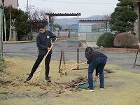 皆川城東小学校は、緑豊かな学校です。秋になり冬になり、たくさんの落ちた葉を、6年生が掃除しました。学校をきれいにしようという気持ちを、嬉しく思います。児童の中には、学年を問わず、登校した後、朝の会までの短い時間を使って、進んで昇降口を掃除したり落ち葉を片付けたりしてくれるお子さんもいます。これからも、気持ちよく生活できる学校を目指していきたいと思っています。