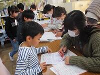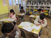 子供たちの、おばあちゃん・お父さん・お母さんの5名の方が、保護者ボランティアとして算数の支援をしてくださいました。2学期の復習プリントの丸付けをお願いしました。1枚終わると、「すごいね~」「ここは、ちょっとおしかったよ」という言葉掛けに、ますますやる気をもって取り組んでいました。5枚終わった!7枚できた!・・・と子供たちは、達成感いっぱいの時間を過ごしました。誰でも、どの学年でも、気兼ねなく参加し、子供たちを見守り支援するという、開かれた学校を目指しています。どうぞ、3学期もよろしくお願いします。