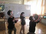 毎週火曜日に行っている自立活動の時間「ひまわりタイム」。前から、「お化け屋敷がやりたい!」「え~、でも準備大変だよ…」と話していましたが、最後に「おばけタイム」を過ごしました。お面を自由にデコレーションし、段ボールで好きなアイテムを作り、教室内に交代で隠れ、互いに驚かせて遊んでいました。今日はとても寒くて薄暗かったこともあり、思っていた以上に皆ビックリしていました。