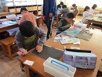 4年生は、図工で版画を行っています。初めての木版画、彫刻刀を使って版を作成しました。彫り進んでいくうちに、彫刻刀の使い方も慣れてきました。丸刀より三角刀のほうが彫りやすいそうです。子供たちは互いにポイントを教え合ってあっという間に上達しました。