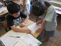 「図書室がよかった。」「保健室には薬がたくさんあった。」など、各自が活動の振り返りをしました。