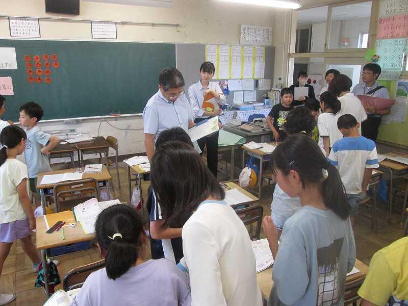 2年生が「町たんけん」を実施しました。雨天での始まりでしたが、元気に出発しました。訪問先で、様々な発見があり、児童たちは大喜びでした。皆川中学校や皆川公民館は身近な場所ですが、気になること、初めて知ったことがたくさんあったようです。保護者やアシストネットのボランティアの方々のご協力をいただき、安全に楽しく学習活動を行うことができました。たんけん後半は雨もあがり、笑顔で学校に戻ることができました。学習にご協力していただきました皆様には心よりお礼申し上げます。