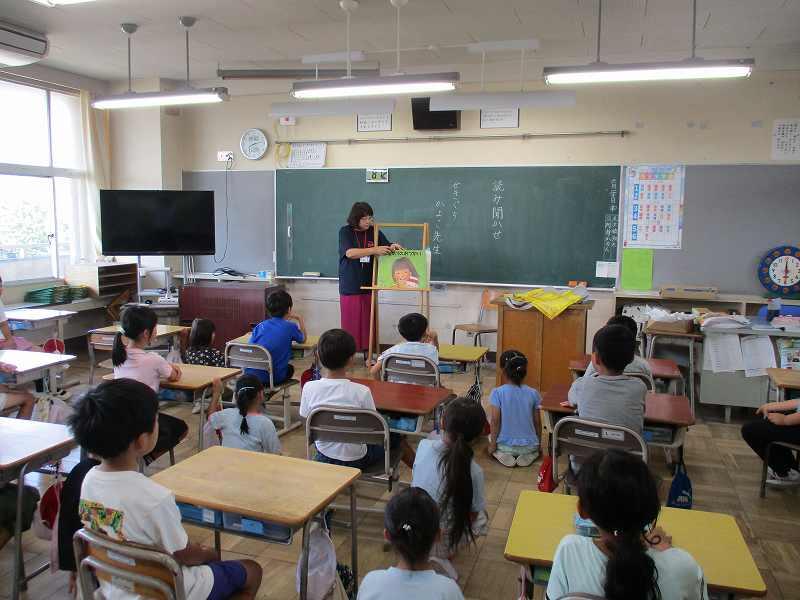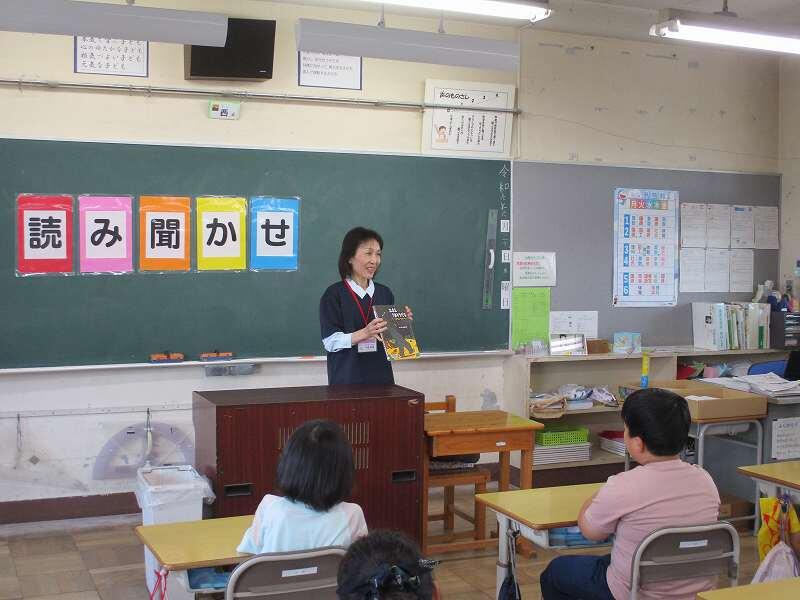 児童たちは、真剣にそして楽しそうに話を聞いていました。各学年に合った内容の本を選んでいただき、ありがたいです。児童たちは、最後に感想を伝えたり質問をしたりしていました。次回も楽しみです。