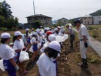 本日は、3・4年生合同で総合的な学習の時間にじゃがいも掘り体験を行いました。地域の大橋様のジャガイモ畑に行き、児童は袋いっぱいになるまでじゃがいもを掘っていました。