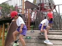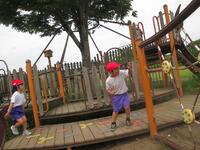 緑地公園では、走り回ったり、たくさんの遊具で遊びました。帰ろうとすると低空飛行をする飛行機が通り、みんなでさようならをしました。