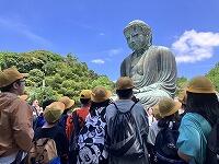 朝の集合時刻には、ゆとりをもって出発式を始められました。そして、日頃の心掛けの賜物でしょうか、予定より30分早く高徳院で鎌倉大仏を見学することができました。