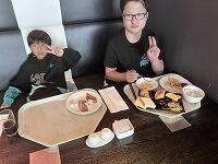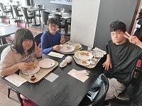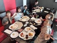 朝食バイキング。朝とは思えないほど、みんなしっかりいただきました。