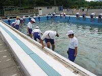 6年生と職員でプール清掃を行いました。(6月3日(月))