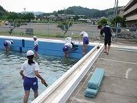 教頭先生からお話をいただきました。 職員でプールを清めました。