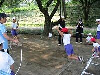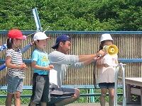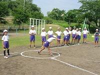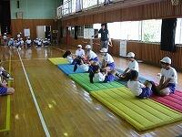 ①校庭の遊具で遊ぶ ②飼育小屋でウサギやチャボを観察 ③体育館でマット運動と紙飛行機とばし ④理科室で糸電話体験 ⑤プレイルームで英語のダンス体験とさいころ体験をしました。