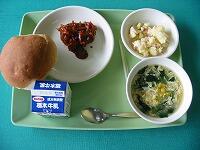 今日は、コッペパン、タンメン、エビシューマイ、中華和えです。