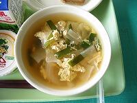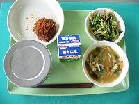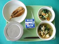 今日は、ごはん、いわしのかば焼き、お浸し、にらたま汁 です。