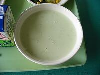 ポタージュは、全体が薄い緑色になっていて珍しい感じでした。