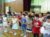 児童が、コの字型に並び初めは全体で「にじ」という歌を合唱しました。