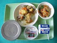 今日は、<ふるさとメニュー>(牛肉、にら、みそは栃木市産)でした。