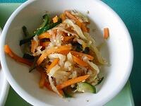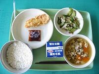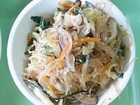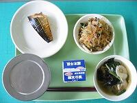 今日は、ごはん、さばのスタミナ焼き、チャプチェ、中華スープです。