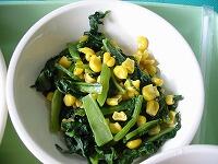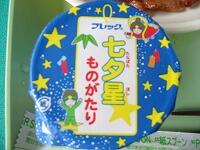 パインパン、鶏肉の照り焼き、小松菜とコーンのソテー、七夕汁、七夕ゼリー です。