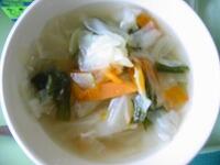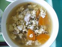 ごはん、かぼちゃのそぼろあんかけ、冷凍ミカン、ごま汁です。