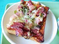 ピザには、サラミ、チーズ、タマネギ、ピーマンがのっていて、重さが結構ありました。