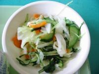 今日は、セルフいか天丼、キュウリの梅肉和え、かみなり汁 です。