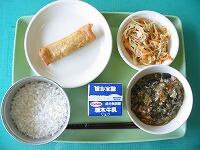 ごはん、マーボーなす、春巻、バンサンスーです。