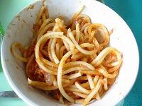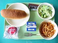 今日は、コッペパン、チョコクリーム、トマトツナスパゲティ