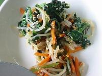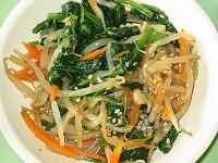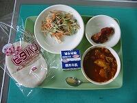 今日の献立は、ビビンバ、豆腐と野菜のスープ、なしゼリー です。