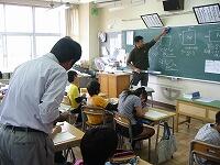 今日は、中学校の先生が小学校の授業の様子を見に来ました。明日研究授業を小中両方で行います。