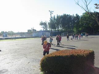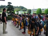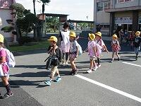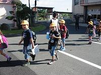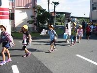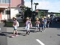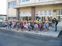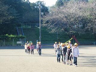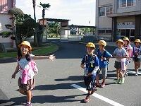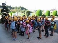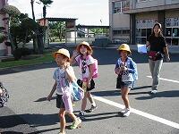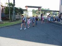 緑地公園での出発式の後、保護者の方の見送りで元気に出発しました。