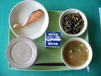 今日の献立は、ごはん、さけの塩焼き、ひじきの炒め煮、豚汁です。