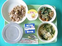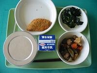 ごはん、豚肉のスタミナ焼き、黒大豆枝豆、中華風卵スープ です。
