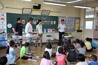 今日は、3年生と4年生の外国語活動の時間に、皆川中の英語の先生が2人来て、授業に参加してくれました。