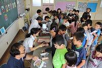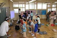 特別支援学校の児童に徒歩で皆川城東小学校まで来ていただいて、班ごとに活動をしました。