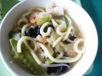 長崎ちゃんぽんには、エビやキクラゲ、豚肉等具材がたくさん入っていました。