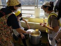 カレーを盛っているところです。新しくゲームになり好評でした。