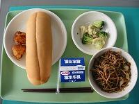今日の献立は、コッペパン、やきそば、いもフライ、ゆで野菜サラダ です。