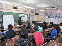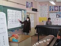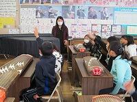 琴を初めて見る児童も多く興味津々で授業を行い、後半には「さくらさくら」