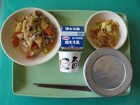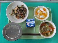 今日の給食は、ひじきごはん、ほっけの一夜干し焼き、田舎汁 です。