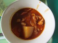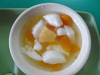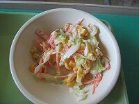 今日の献立は、カレーライス、キャベツとコーンのソテー、フルーツポンチ です。