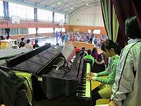 今日は、中学校の音楽の先生と本校の音楽教員がチームティーチングで