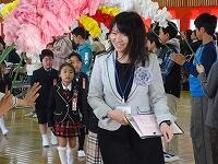 校長先生のあいさつに続き、児童代表の歓迎のことば、児童会からの全校生による歌の