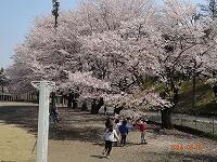くじら桜の下で、子どもたちも元気に遊んでいます。