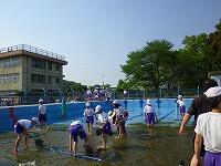 5・6年生と教職員で、プール清掃を行いました。